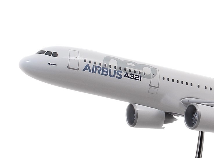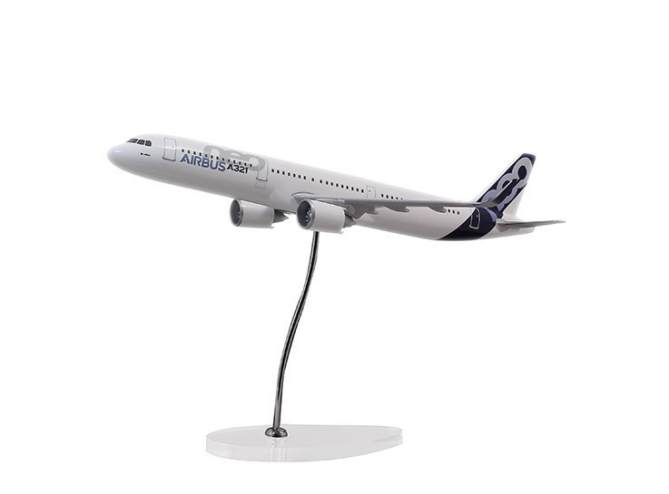 This exceptionally high-quality model of the A321neo, made of polyurethane resin, is the perfect size to adorn your desk. Its detachable wings and stabilizers make shipping easier. Presented in a white gift box, lined with protective muslin inside. This model comes with a microfiber cloth. Dimensions: 445 x 358 x 117 mm