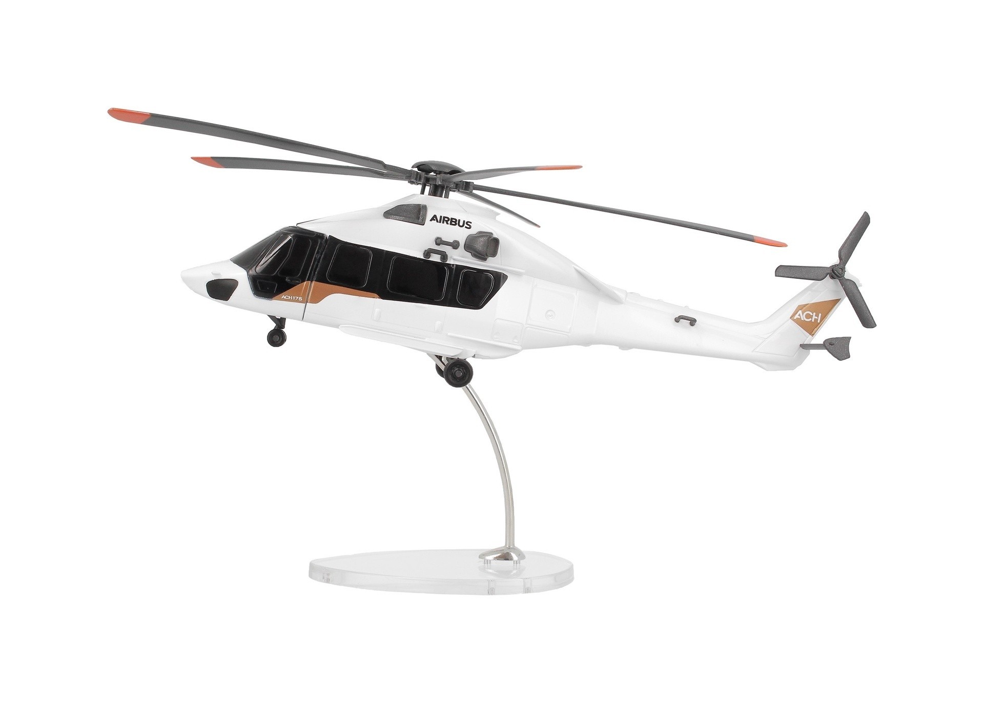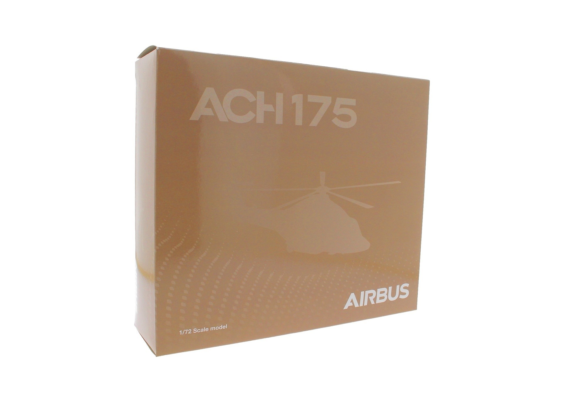 This H175 ACH livery scale model, of exceptionally high quality at 1/72 scale, is molded in die-cast metal. The decoration, applied through tampography, along with its glossy varnish finish, enhances its realism. Incredibly detailed, it features a sturdy and dense fuselage. It comes presented in a box adorned with the colors of Airbus.