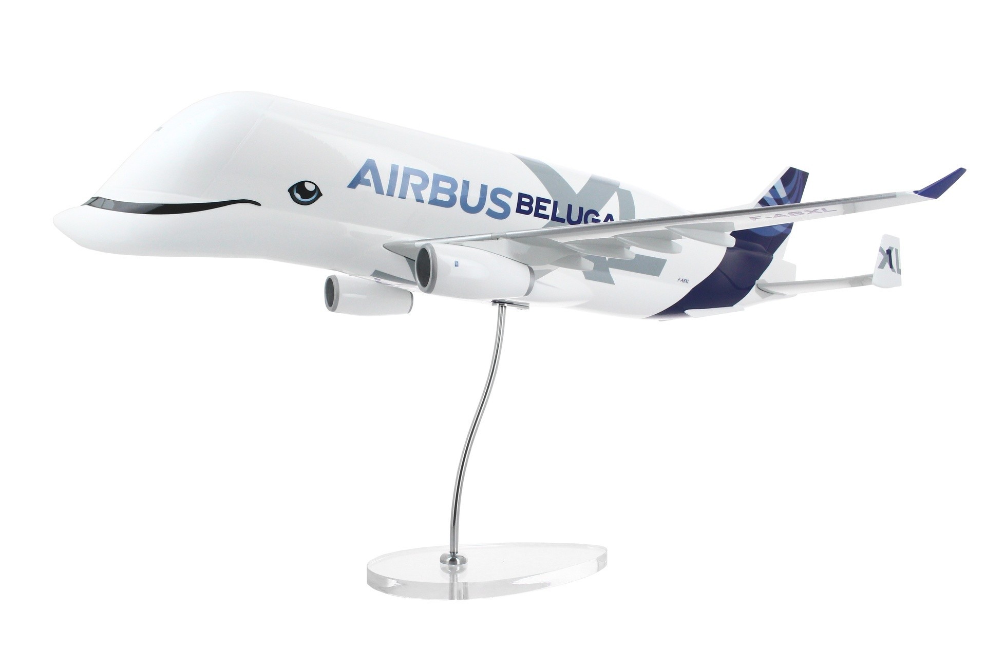 Cette maquette du BelugaXL "new livery" de qualité exceptionnelle, en résine polyuréthane, est de taille idéale pour prendre place sur votre bureau. Ses ailes et ses stabilisateurs démontables facilitent l'expédition. Présentée dans un coffret cadeau blanc, dont l'intérieur est habillé d'une mousseline de protection.