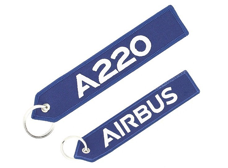 Airbus key ring and luggage tag. Reinforced edges, strong eyelets, A220 lettering. Large size: 160 x 30 mm