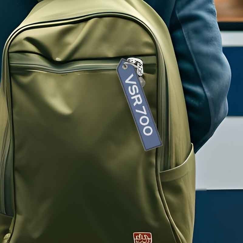 Original cult key ring and luggage tag. Reinforced edges, strong eyelets, VSR lettering. Large size: 160 x 30 mm