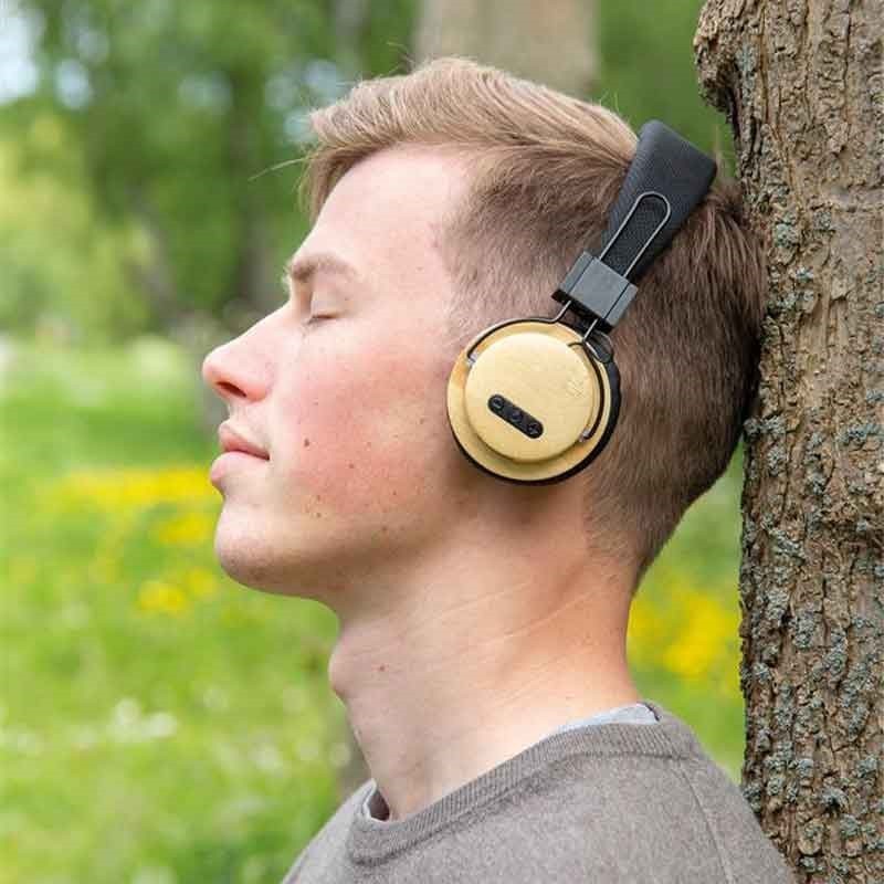 Durable bamboo audio headphones made from carefully selected materials. The ear cushions are made of bamboo and the headband is made of polyester. BT 5.0 for quick connection up to 10 meters. 200 mAh battery allowing for up to 4 hours of listening, with a charging time of 2 hours. With microphone function for answering calls.