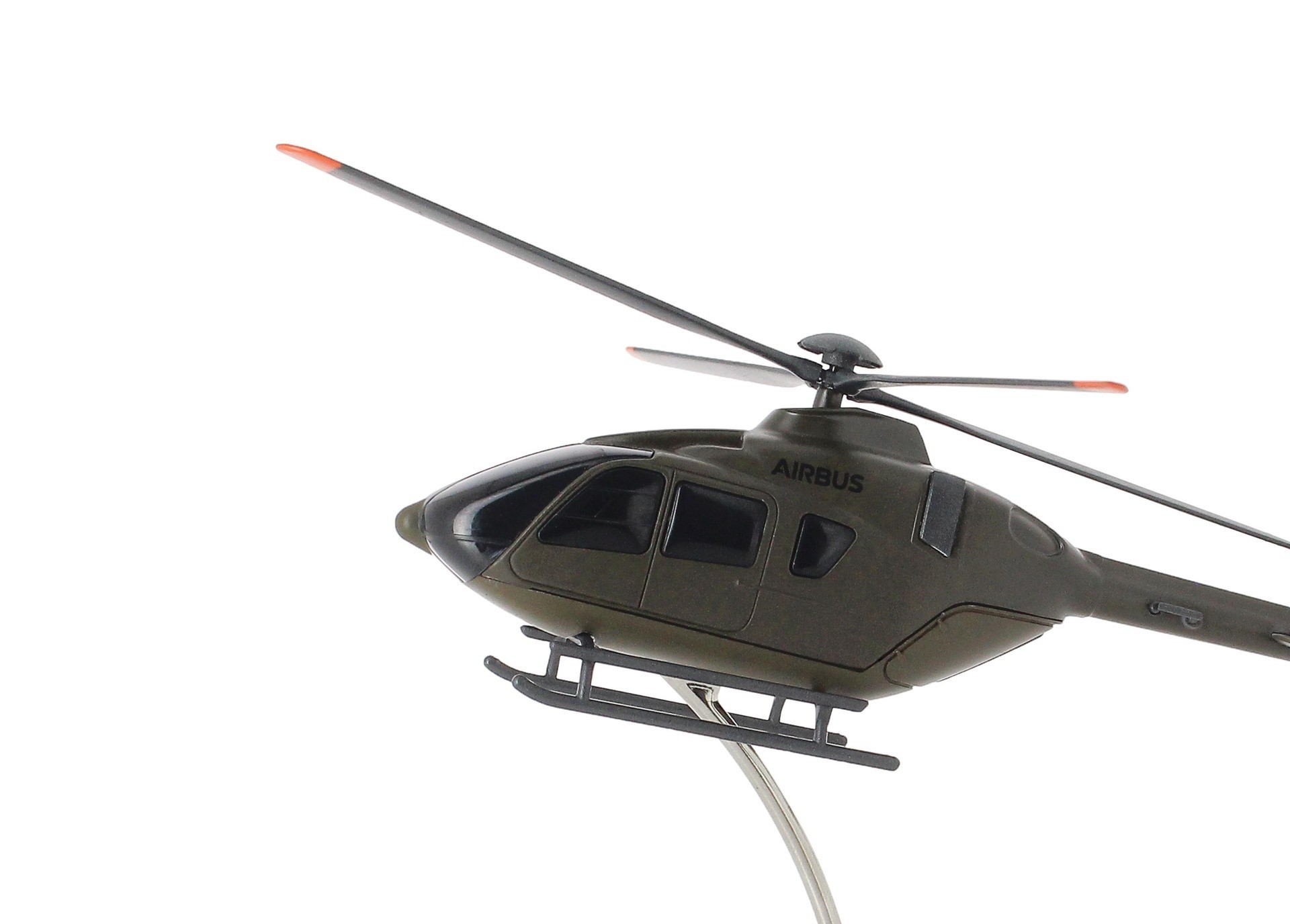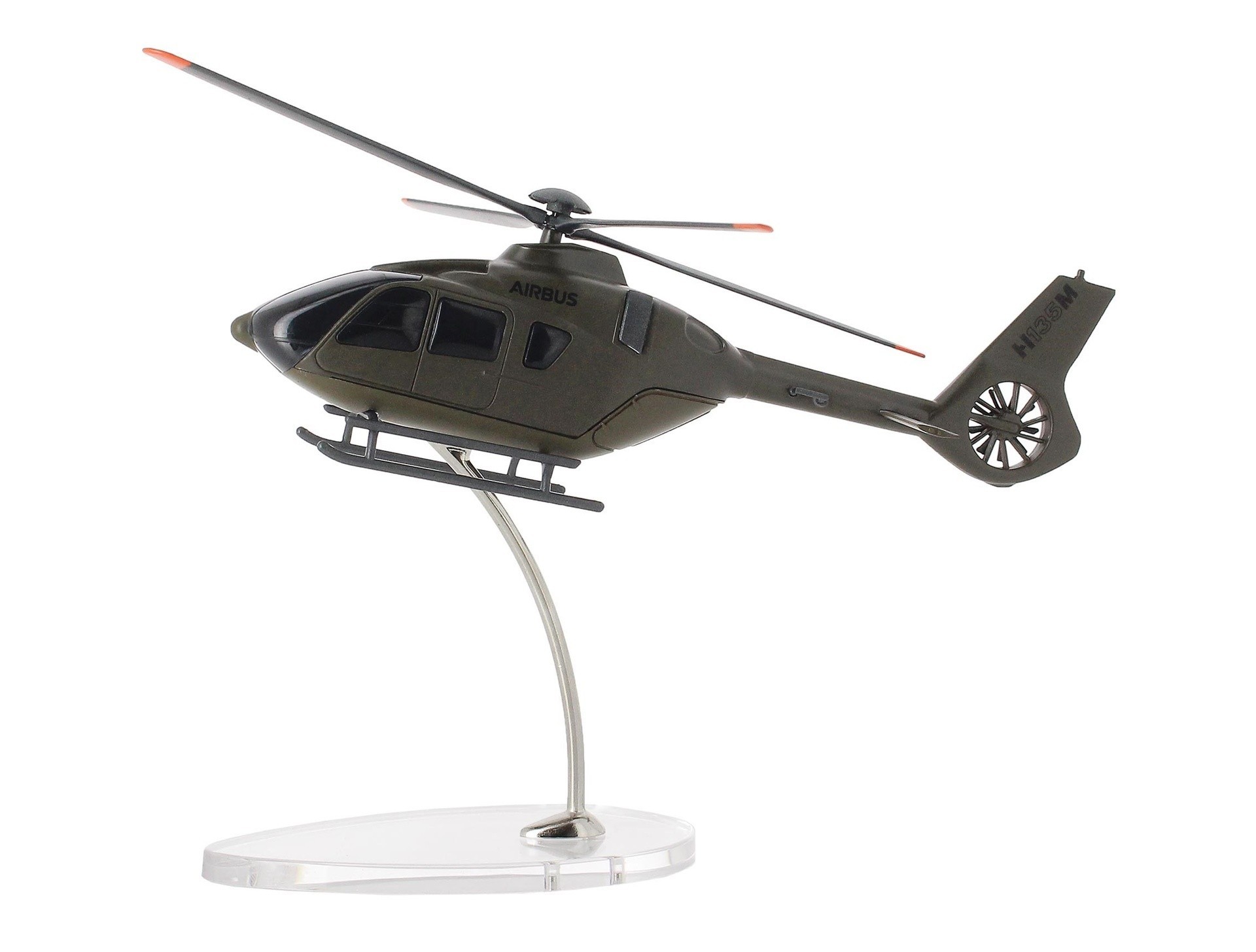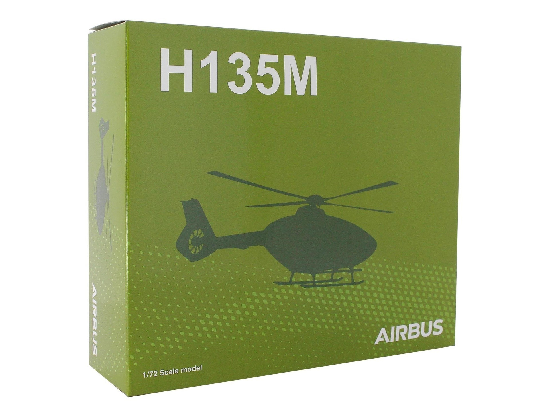 This quality metal diecast Airbus H135M military livery model in 1:72 scale is pad-printed/spray painted and finished with glossy varnish coating. Highly detailed it features a solid/heavyweight metal fuselage. Packed in a full colour printed Airbus box