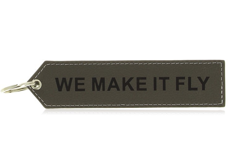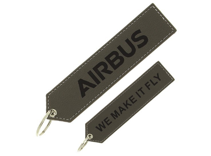 The executive "We make it fly" PU key ring and luggage tag. Reinforced edges, strong eyelets, Airbus logo lettering. Large size: 160 x 30 mm