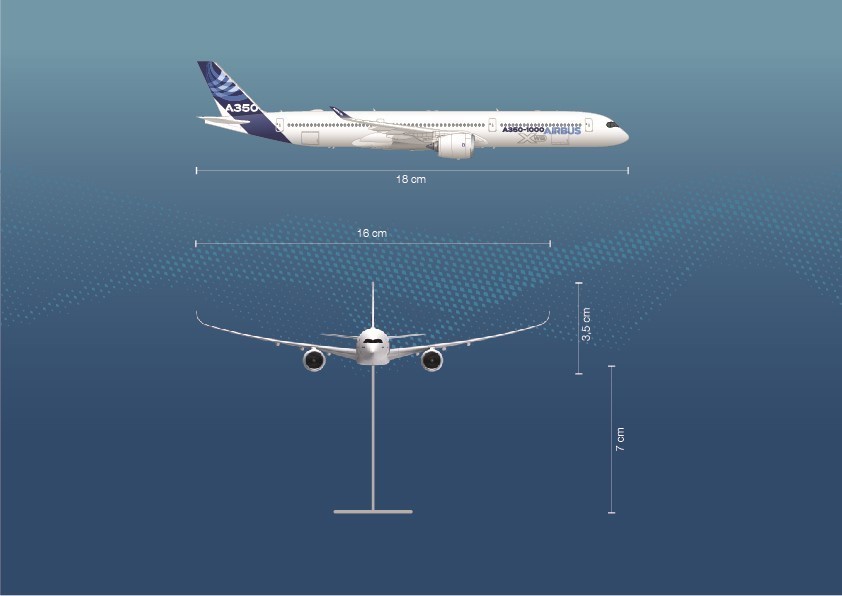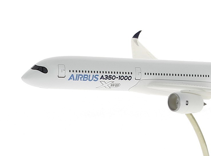 This quality metal diecast Airbus A350-1000 model in 1/400 scale is pad-printed/spray painted and finished with glossy varnish coating. Highly detailed it features a solid/heavyweight metal fuselage. Packed in a full colour printed Airbus box. No assembly required. Size: 17 cm